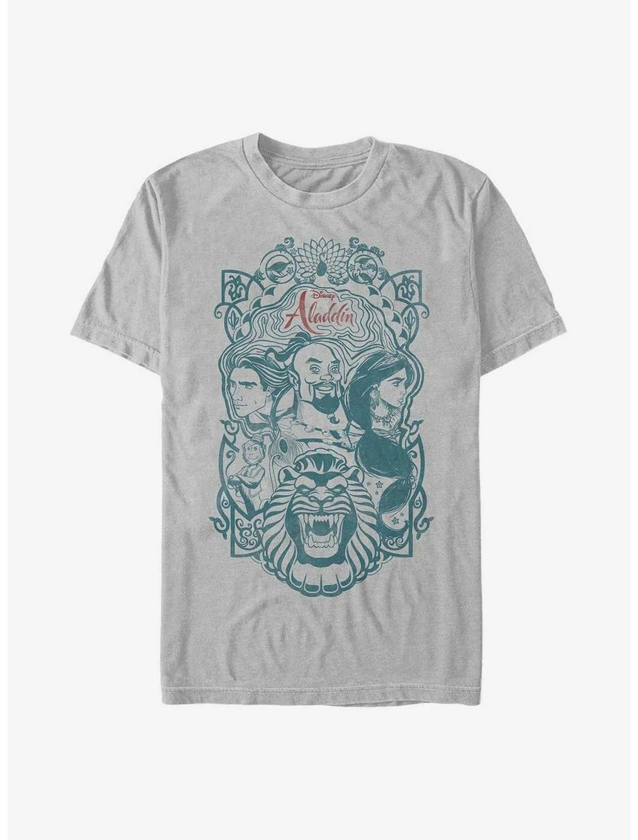 Disney Aladdin Live Action Genie, Aladdin, and Jasmine Nouveau Style Poster T-Shirt